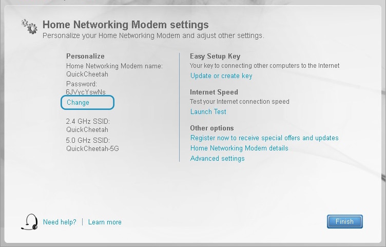 Don't forget to update the settings for your other devices to connect to your new Wi-Fi network. Write down your Wi-Fi name and password and keep it in a safe place. If you need to access your Wi-Fi modem's settings again in the future, your 2.4GHz Wi-Fi password replaces the default password.