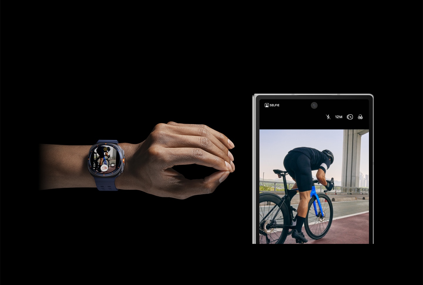 Prenez des photos, répondez à des appels ou mettez les alarmes en sourdine, le tout avec un simple double pincement. La montre Galaxy Watch Ultra est encore plus puissante lorsqu’elle est jumelée à d’autres appareils Samsung Galaxy. Gardez le contrôle, restez connecté. 40, 41