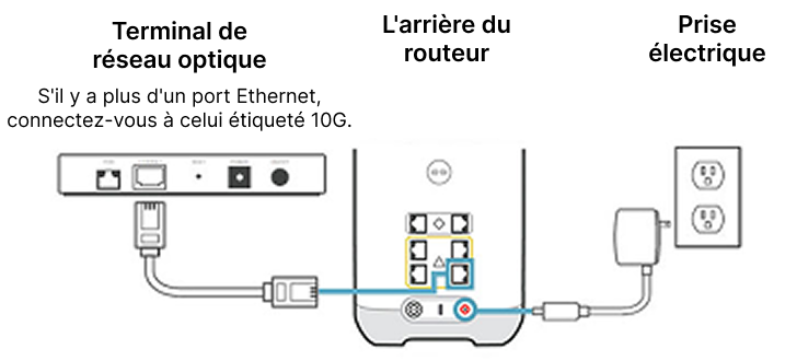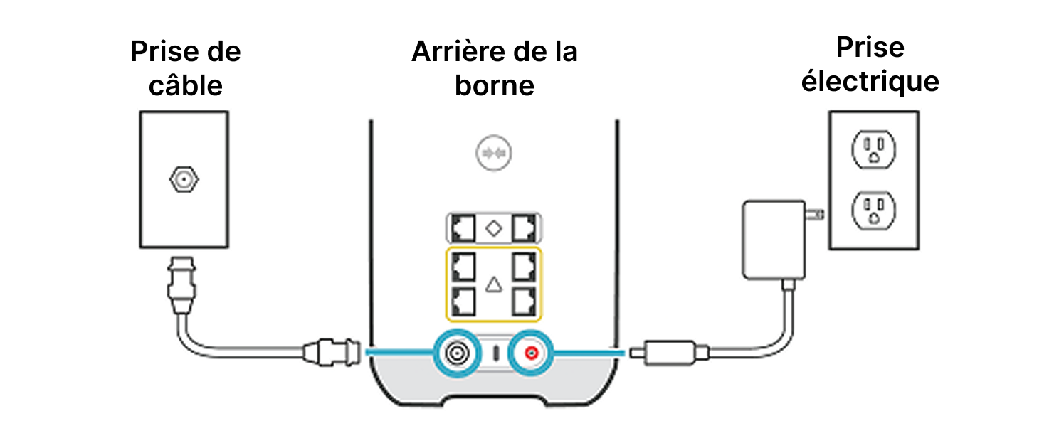 - Lorsqu’on vous le demande, connectez la borne à votre source Internet. Il peut s’agir d’un port Ethernet mural ou d’un terminal de réseau optique fourni par Rogers.