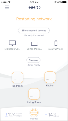 If you need to reboot your individual eeros or your entire network, it’s as simple as tapping a button on the eero App. You won’t have to manually unplug each individual eero device.