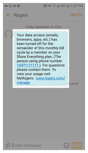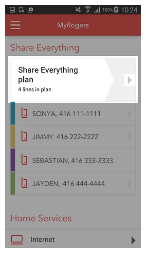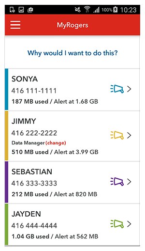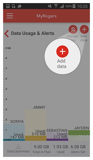Manage your family’s data through MyRogers for free and only with Share EverythingTM, the plan that puts you in control. Just go to MyRogers to monitor data usage, set up fully customizable Real-Time* Alerts, top up or pause data for each member or device that's part of the plan.